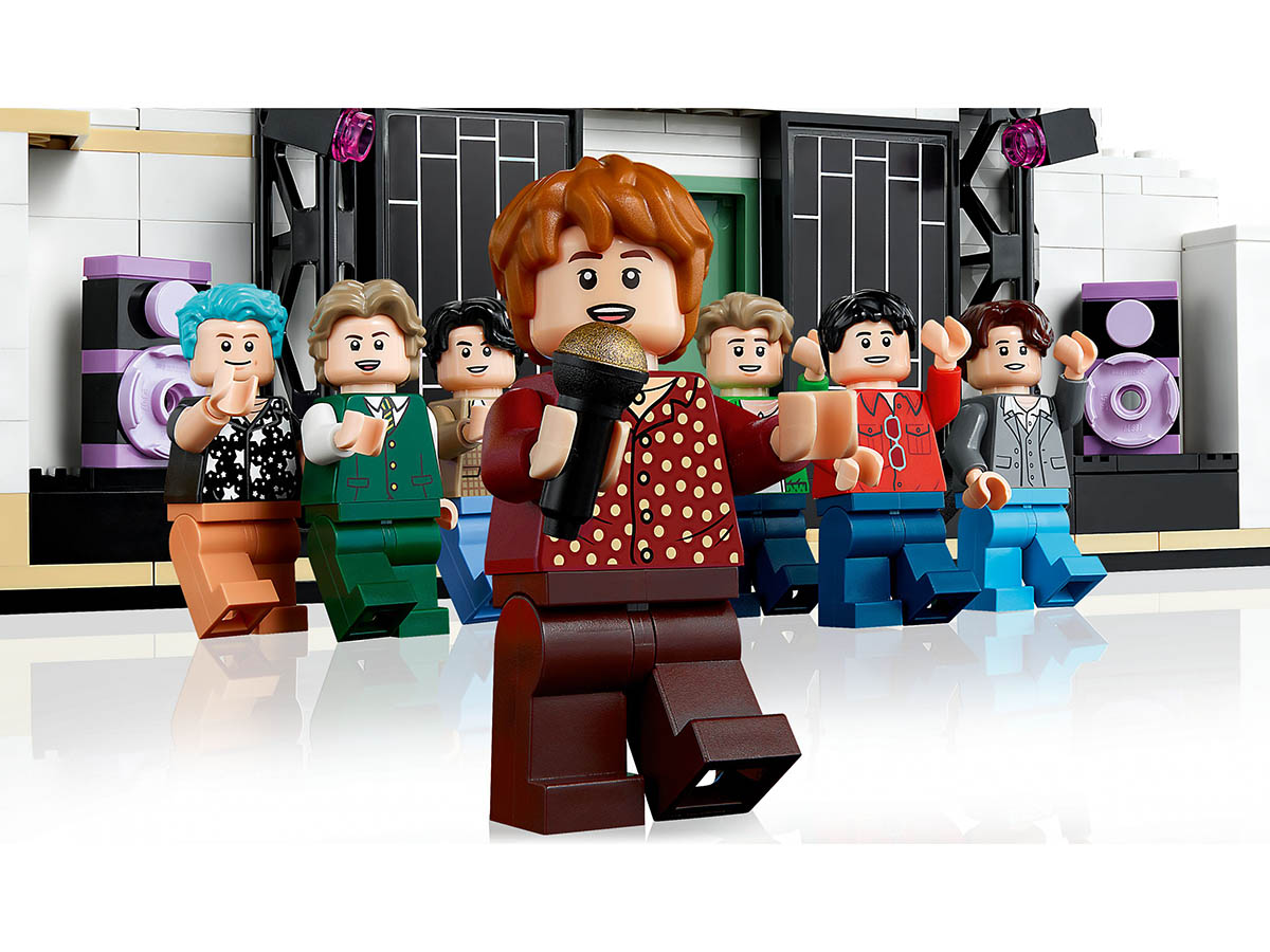 - Sieben LEGO® Minifiguren der BTS-Mitglieder inklusive Mikrofone.