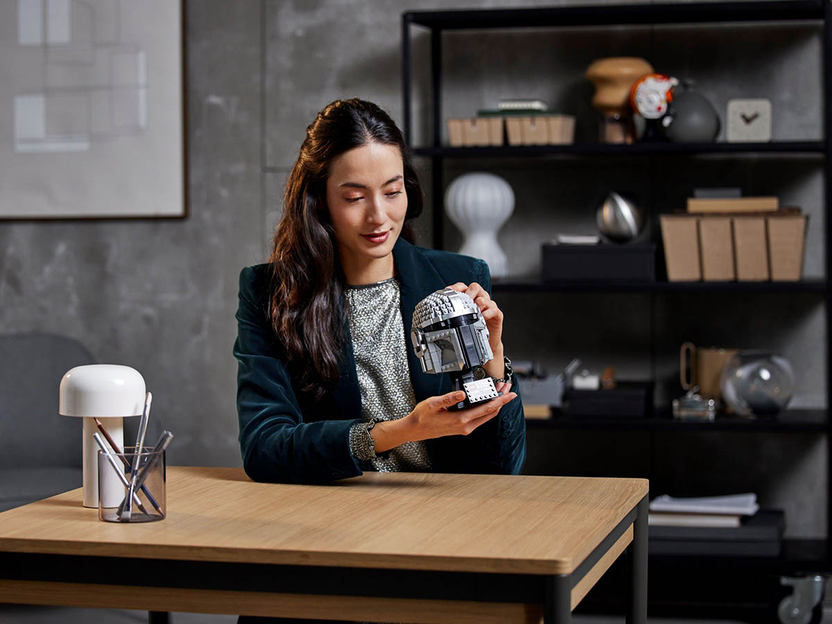 Mit 584 präzise gefertigten LEGO® Steinen entsteht ein atemberaubend detailgetreuer Mandalorianer Helm. Der metallische Glanz der Beskar-Panzerung wird durch trommellackierte LEGO® Elemente wiedergegeben, während unterschiedliche Grautöne die Konturen des Helms nachbilden. Jedes Detail des Helms ist sorgfältig konzipiert, um eine realistische Darstellung zu erreichen.