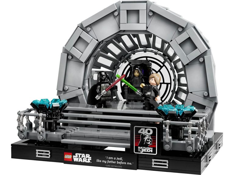 Dieses detailreiche Diorama bietet eine Fülle von authentischen Star Wars Merkmalen. Unter anderem wird ein speziell gestaltetes Todesstern-Fenster und der drehbare Thron von Imperator Palpatine präsentiert. Mit 807 Teilen hat dieses Set alles, was man braucht, um die berühmte Szene nachzubauen.